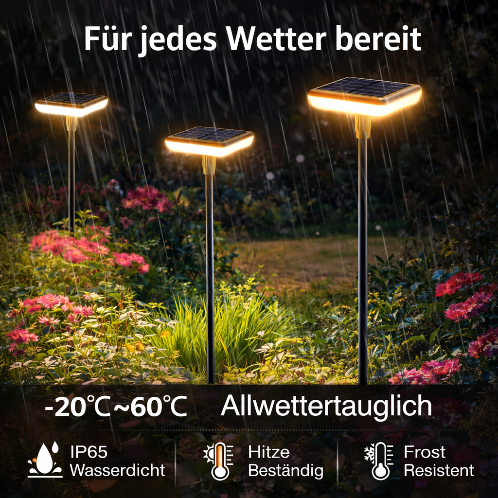 Ja, all unsere Solarlichter sind sowohl frost-, hitze- als auch wasserbeständig und kommen mit einer 2-jährigen Garantie sowie einer TÜV-Prüfung für maximale Qualität. Wir legen keinen Wert auf Standardprodukte aus China.