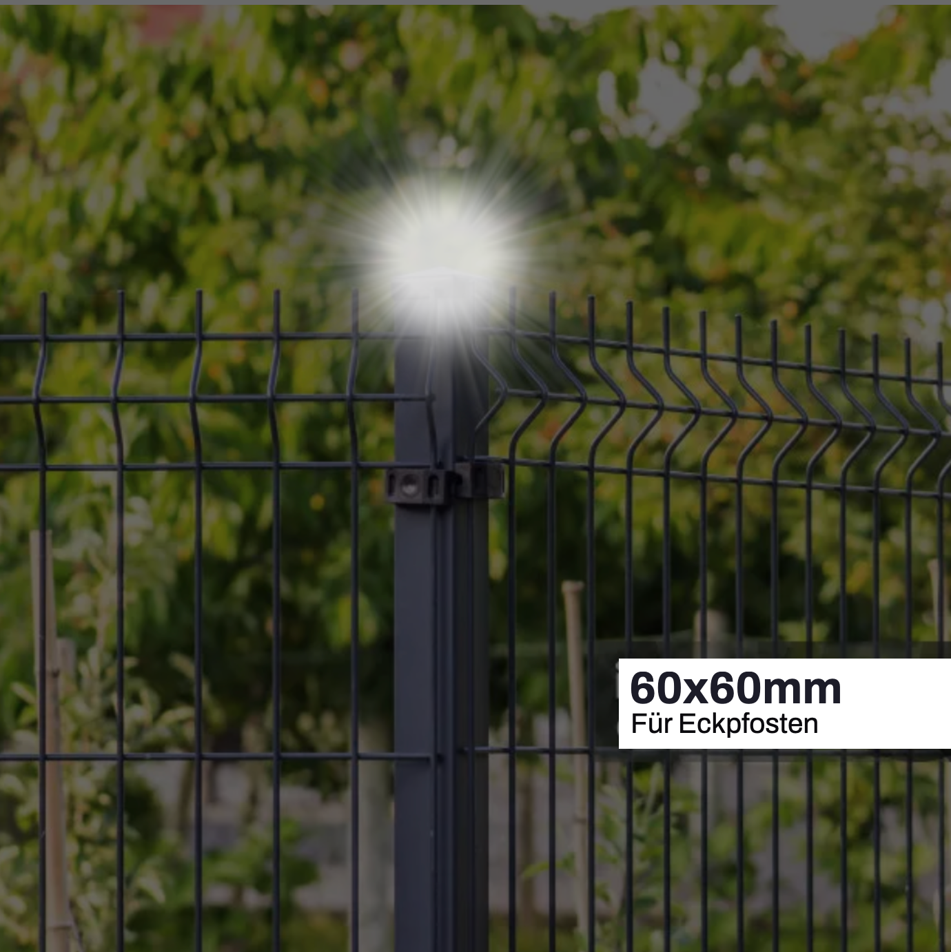 Unsere innovative solarbetriebene Leuchte ist speziell für Pfosten und Steher mit der Dimension 80x80 mm konzipiert und somit die perfekte Wahl für Stabzäune, Gitterzäune und Doppelstabmattenzäune.