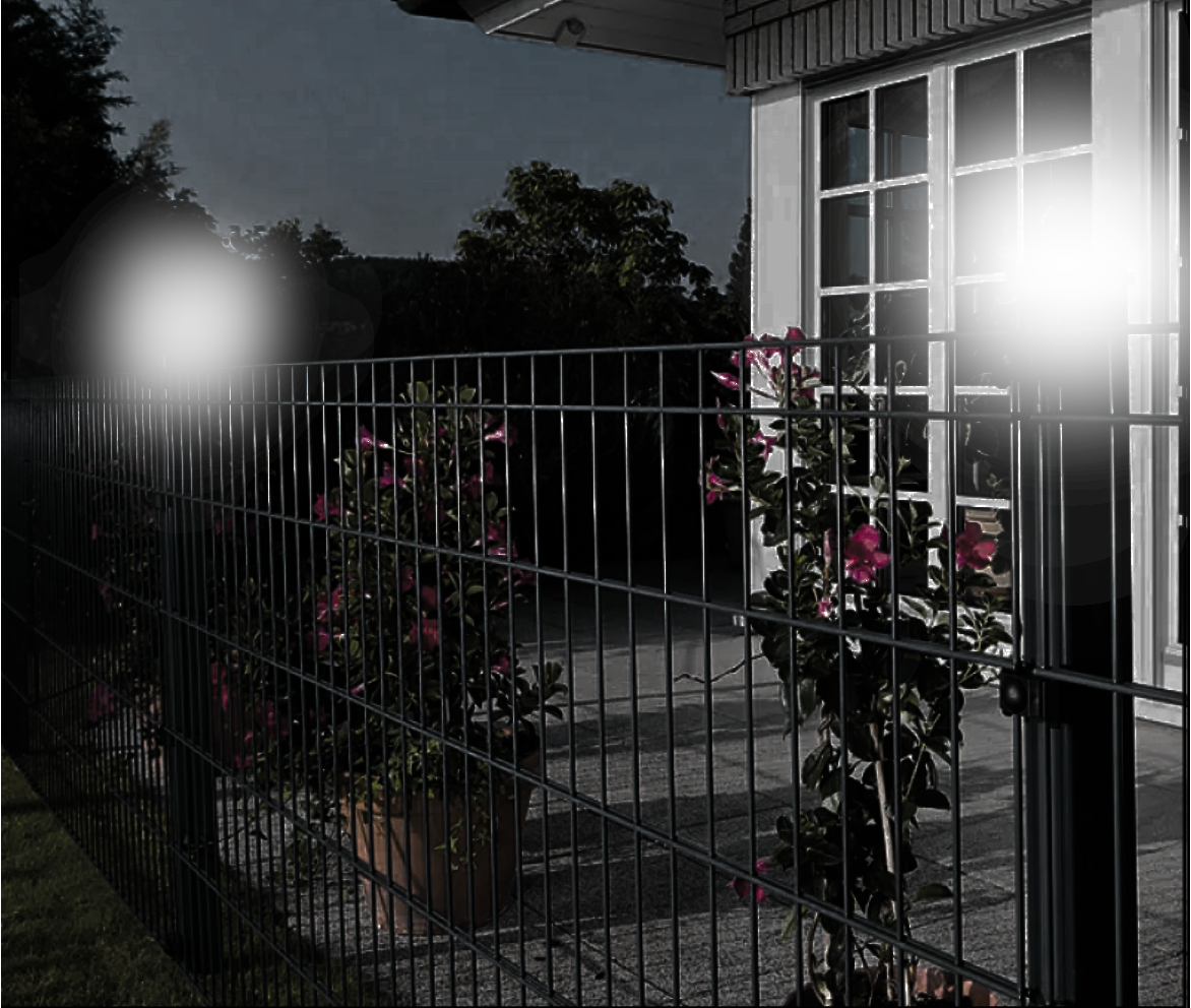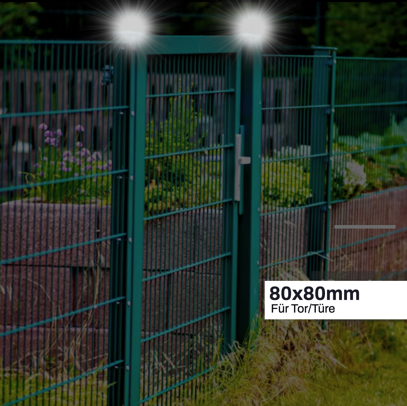 Die Solarleuchte für 80x80 ist die ideale Lösung für die Beleuchtung von Türen und Toren an Doppelstabzäunen.